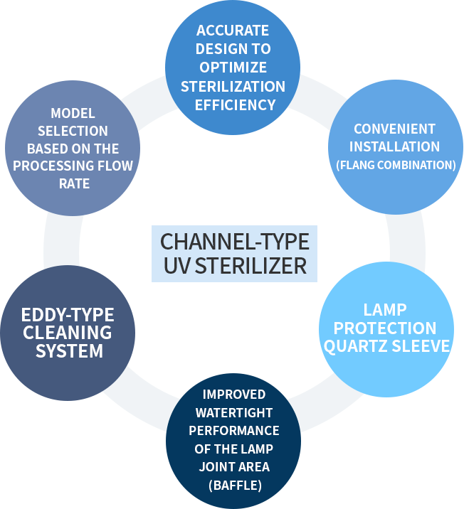 UV energy permanently changes the DNA structure of bacteria and microorganisms in the water, so it is possible to secure stable water quality through UV sterilization